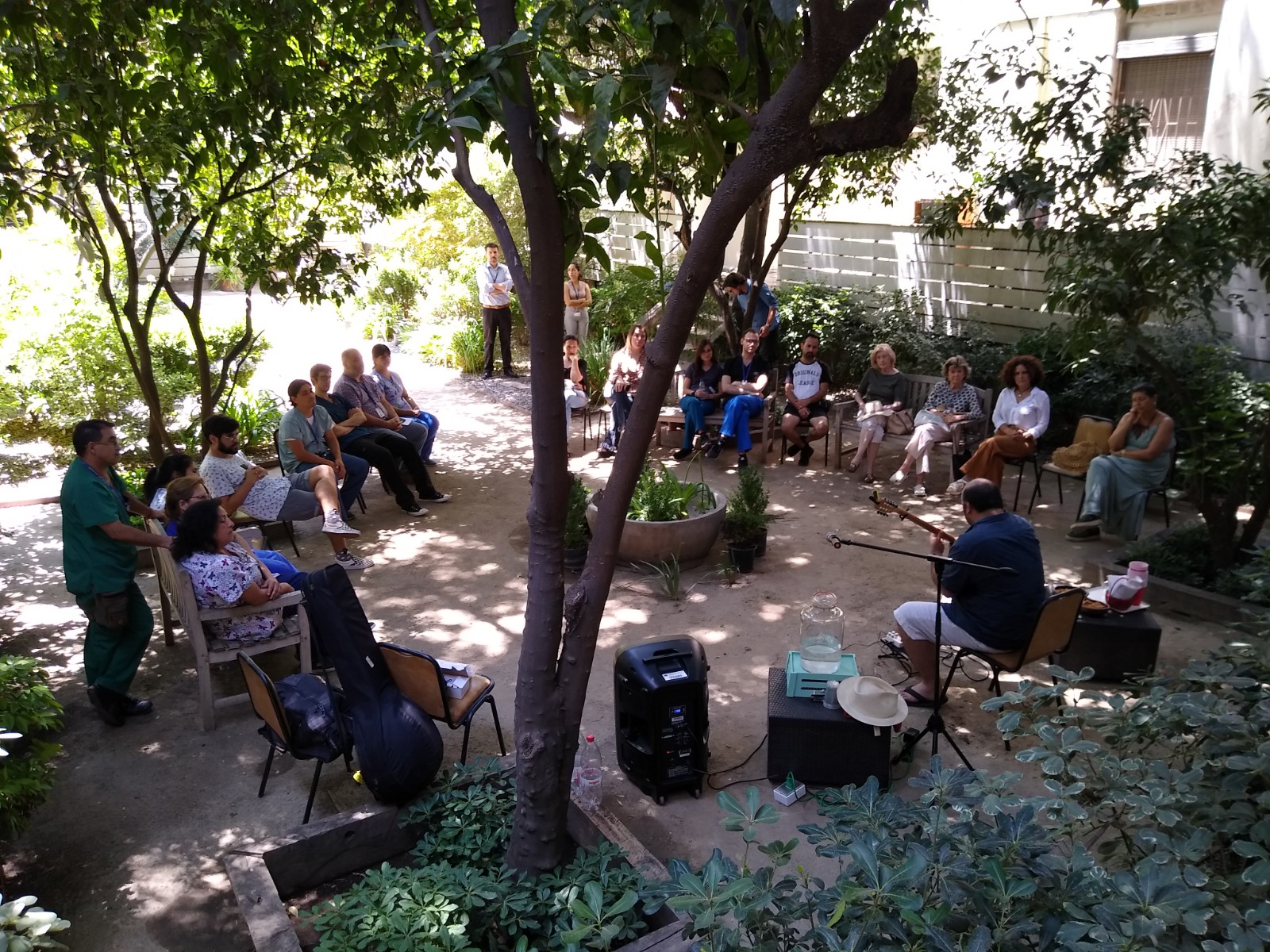 En el lugar estaba Alexandros Tefarikis, músico y productor de vasta trayectoria, de origen griego, quien nos regaló un inspirador concierto para toda la comunidad hospitalaria.