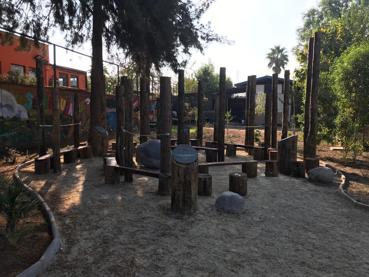 Los nuevos 300 metros cuadrados del lugar conforman un Jardín Memorial (ideado en conjunto con la empresa Ecoplan). Como fundación propusimos un diseño de juegos interactivo, tipo espiral con 40 unidades de troncos más la instalación de señalética que, en su contenido, potencia los valores asociados a Coaniquem.